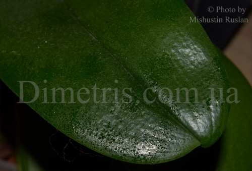 - Сахаристые выделения мучнистого червеца на листе фаленопсиса.