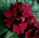 Простые и полумахровые кроваво-красные цветы, слегка волнистые лепестки. Компактная розетка из тёмных листьев.